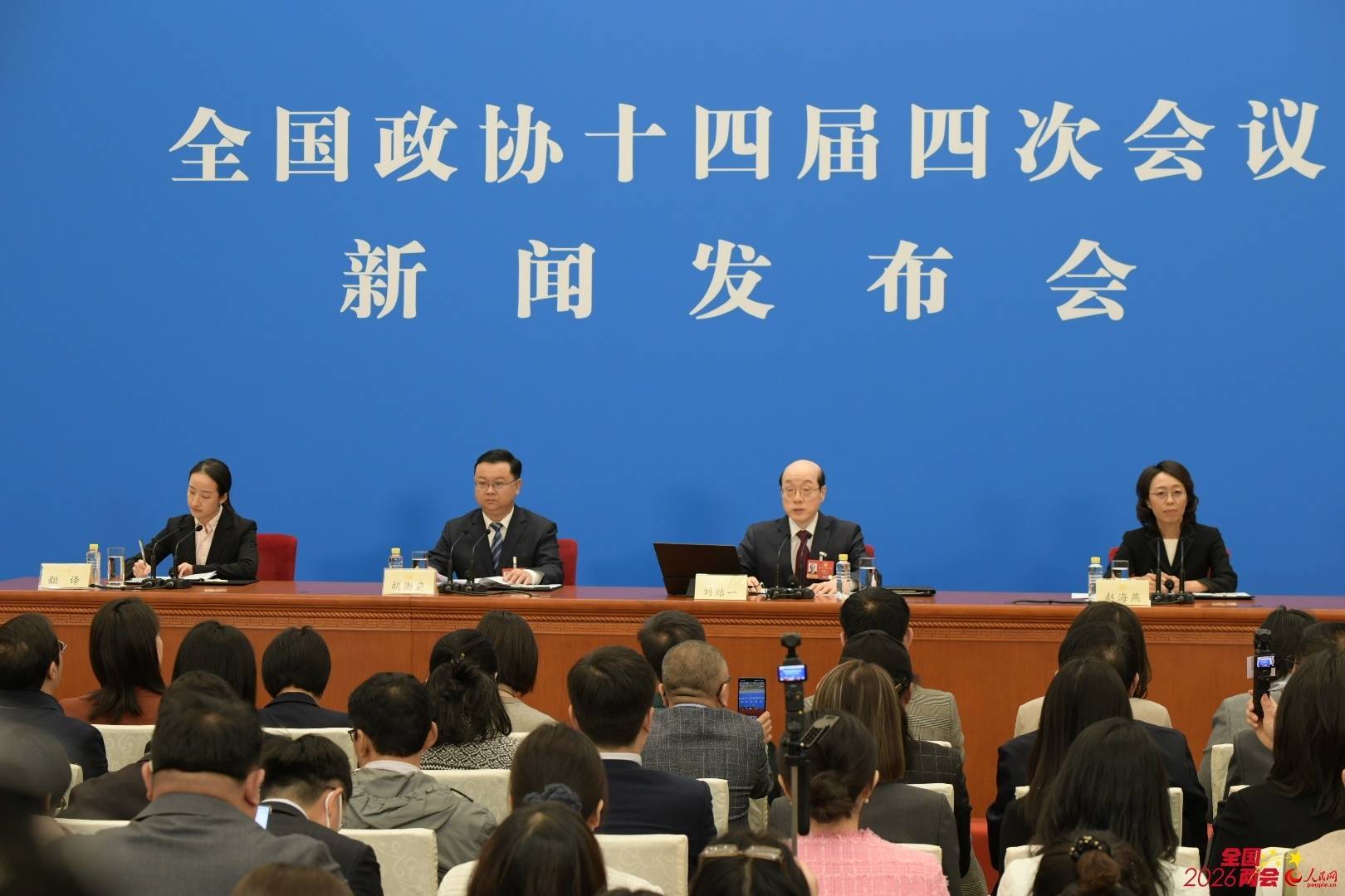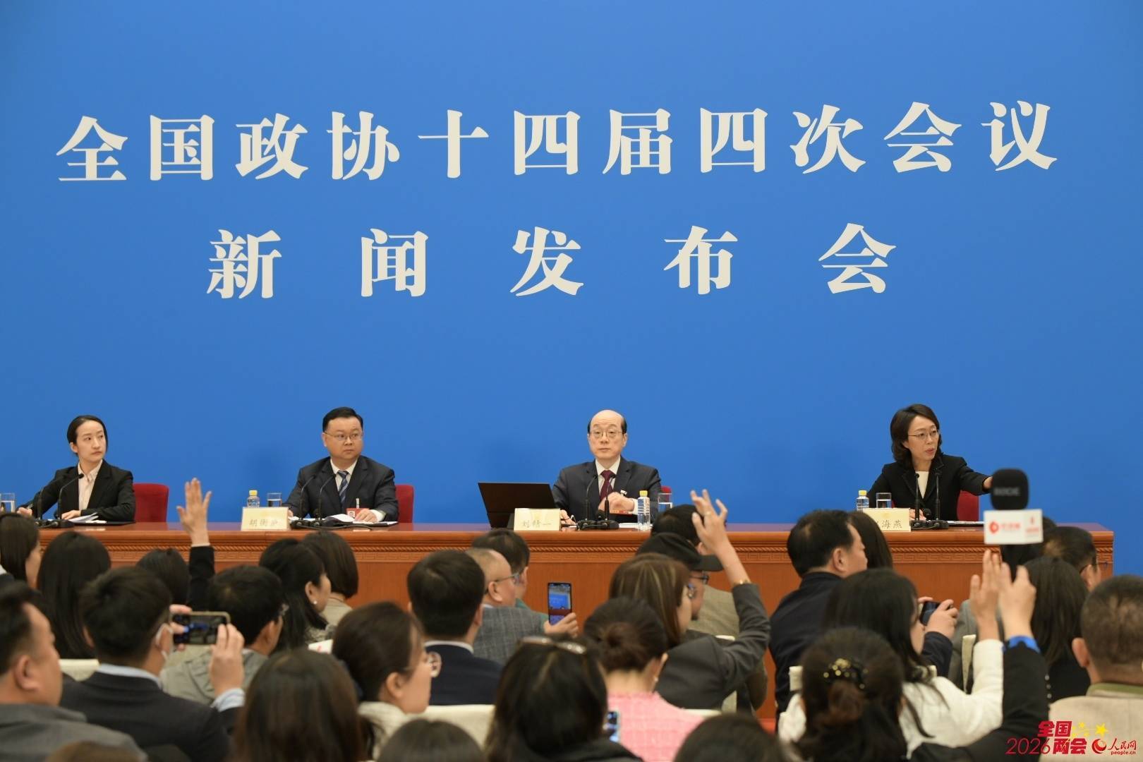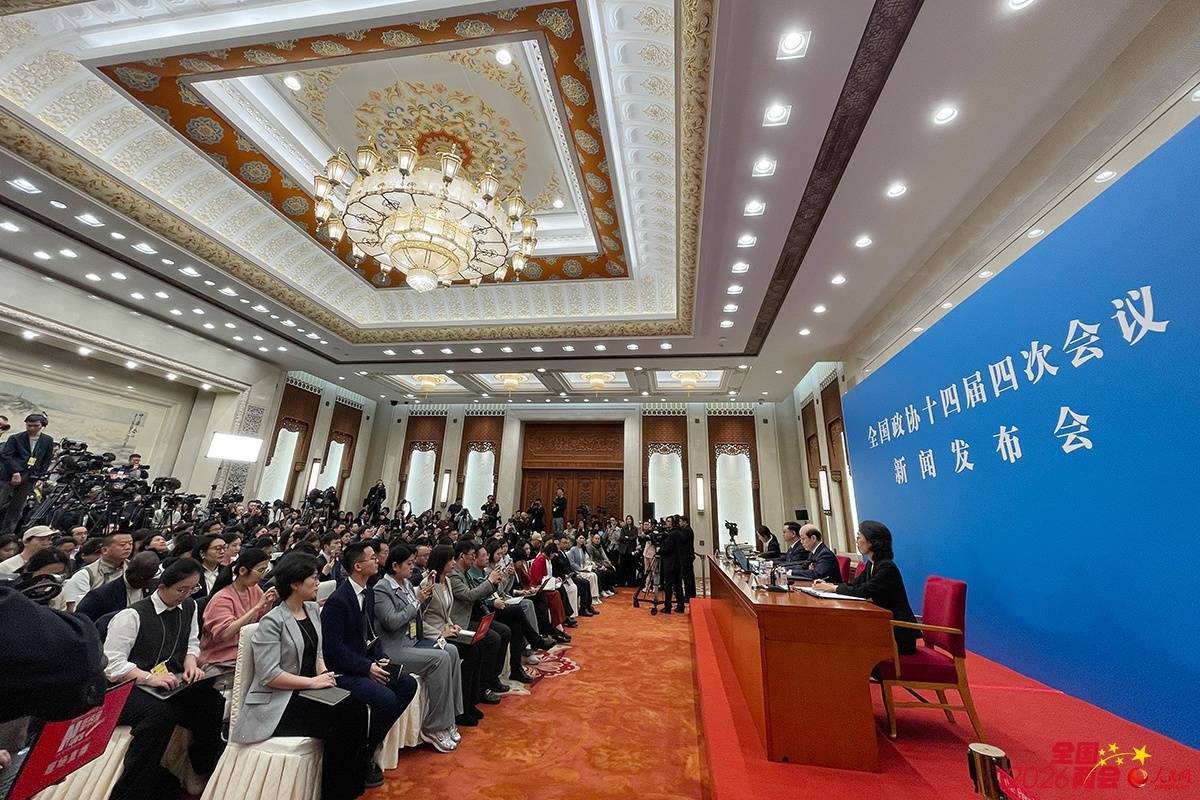 3月3日15时,全国政协十四届四次会议新闻发布会在人民大会堂一层新闻发布厅举行。大会新闻发言人刘结一向中外媒体介绍本次大会有关情况并回答记者提问。人民网记者 尹星云摄