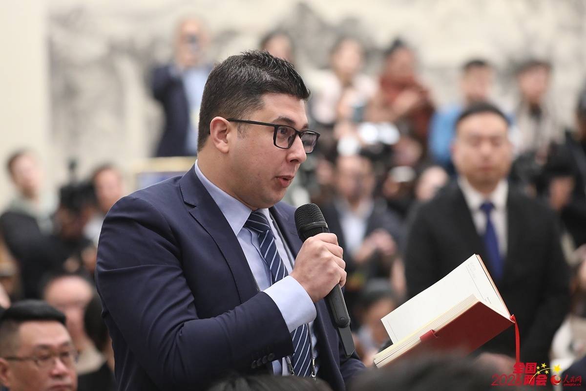 中阿卫视记者现场提问。人民网记者 尹星云摄